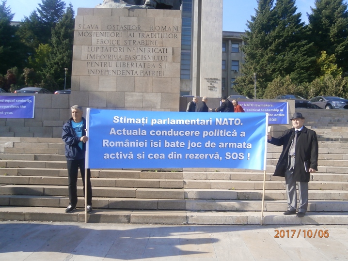 Reprezentantii Rezervei Armatei Romaniei, intruniti azi 6 octombrie 2017 in Bucuresti, cu ocazia MARŞULUI TĂCERII – MARSULUI DEMNITATII, o acţiune de protest organizată de Federaţia Militarilor din România si Forumul structurilor asociative ale militarilor, acţiune materializată prin depuneri de coroane, marş şi adunare publică, constatand degradarea continua a statutului militarului in societatea Romaneasca, au cazut cu totii de accord sa va informam pe dumneavoastra si pe reprezentanţii Adunarii Parlamentarre NATO, asupra situatiei reale .