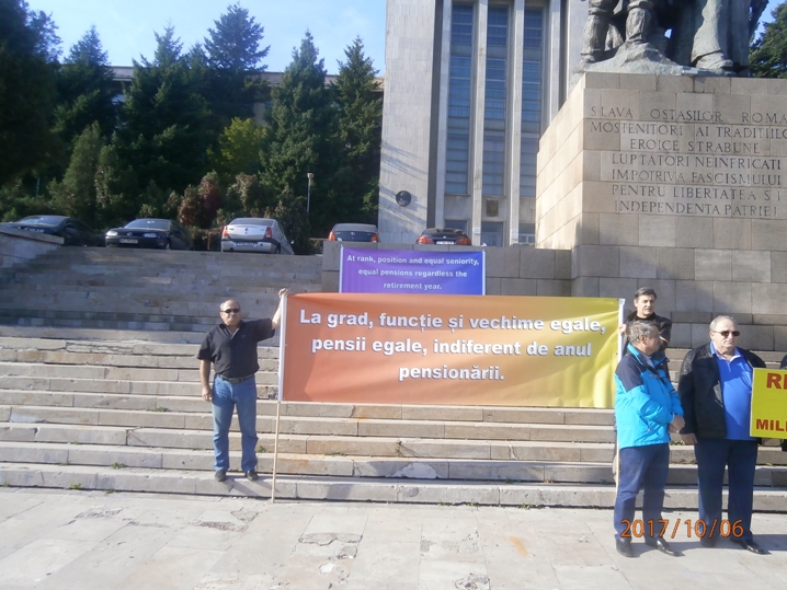 Am fost tentat să scriu marșul muților, dar se putea interpreta neplăcut și am renunțat. A fost ziua de 06.10 . 2017, a avut loc activitatea organizată de Federația Militarilor din România, propusă în data de 07.09.2017 și planificată în data data de 20.09.2017, un marș al Demnității, un marș demn al pensionarilor militari, că rezerviști îmi vine greu să mai spun dacă iau în calcul atitudinea mustind de indiferență și dispreț a politicienilor, guvernelor chiar și a MApN față de această categorie de militari, dar și lipsa de reacție, participare și implicare a imensei majorități a celor care nu știu decât să plângă că li se fură pensiile și atât.